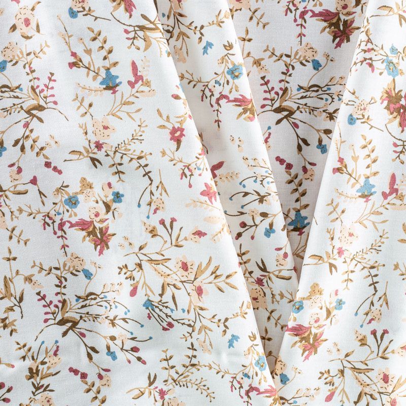 Плательно-блузочный штапель с цветочным принтом на белом фоне. Мягкий, тонкий, нежный, пластичный, приятный на ощупь, хорошо драпируется, практичный. Подойдет для пошива платья, топа, блузки, рубашки, юбки, летних брюк.