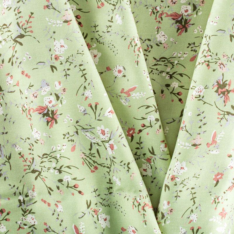 Плательно-блузочный штапель с цветочным принтом на зеленом фоне. Мягкий, тонкий, нежный, пластичный, приятный на ощупь, хорошо драпируется, практичный. Подойдет для пошива платья, топа, блузки, рубашки, юбки, летних брюк.