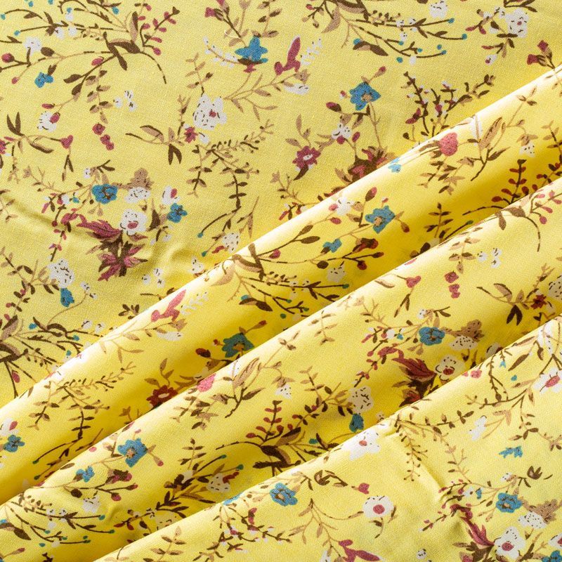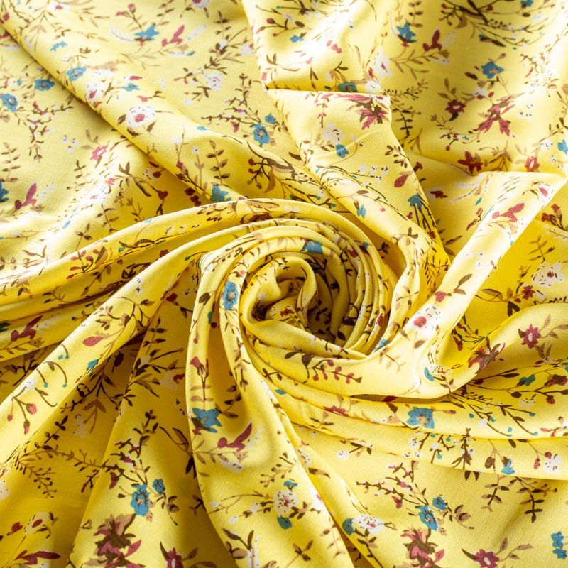 Плательно-блузочный штапель с цветочным принтом на желтом фоне. Мягкий, тонкий, нежный, пластичный, приятный на ощупь, хорошо драпируется, практичный. Подойдет для пошива платья, топа, блузки, рубашки, юбки, летних брюк.