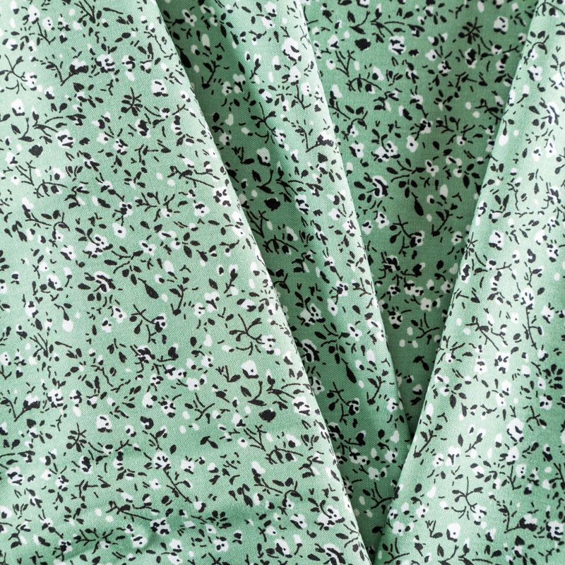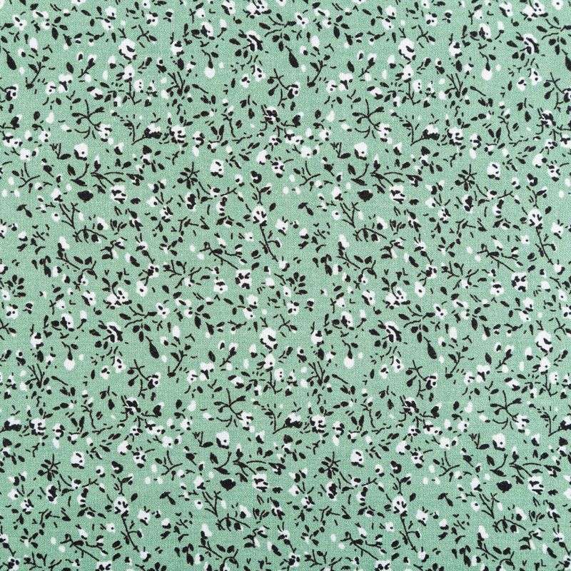 Плательно-блузочный штапель с мелким растительным принтом на мятно-зеленом фоне. Мягкий, тонкий, нежный, пластичный, приятный на ощупь, хорошо драпируется, практичный. Подойдет для пошива платья, топа, блузки, рубашки, юбки, летних брюк, комбинезона.