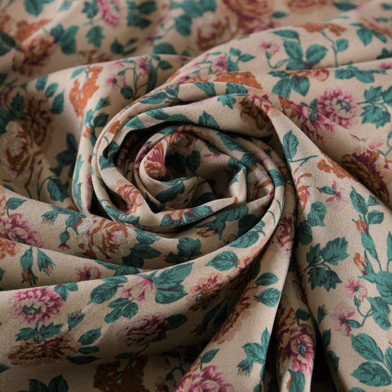 Штапель 069-11699 песочно-бежевый принтованный