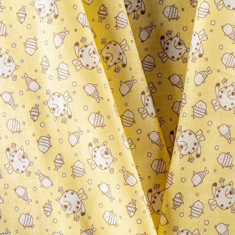 Ткань полотняного переплетения, тонкая, легкая и мягкая. Не вызывает аллергии, дышит и хорошо впитывает влагу. Милый детский принт в виде рисованных животных на светло-желтом фоне прекрасно подойдет для пошива детской одежды, нательного белья, халатов и пижам.
