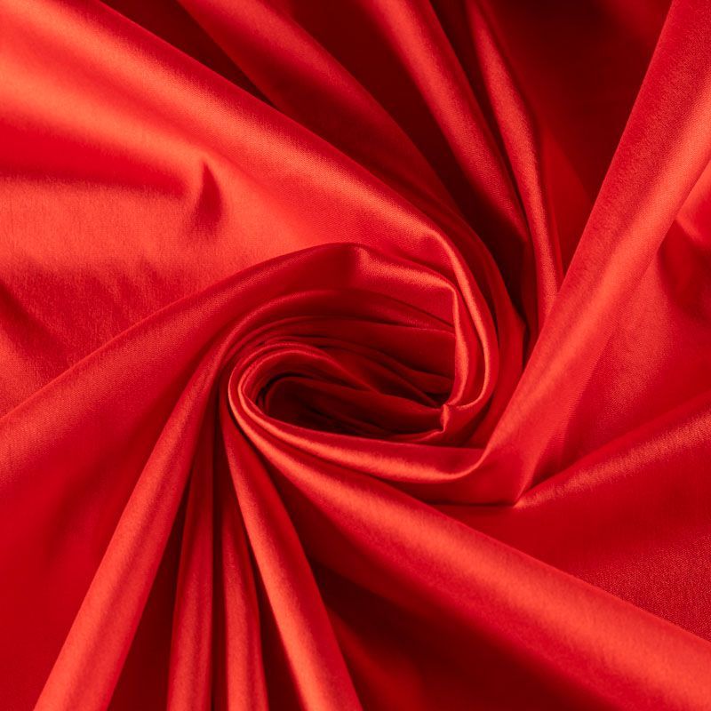 Шелковистая тафта сочного ягодного оттенка. Поверность матовая, с благородным шелковым лоском. Полотно средней плотности, легкое, отлично держит форму, драпируется жесткими складками. Хорошо смотрится в платьях с пышными юбками и крупными драпировками, костюмах, корсетах для платья, вечерних и коктельных платьях.