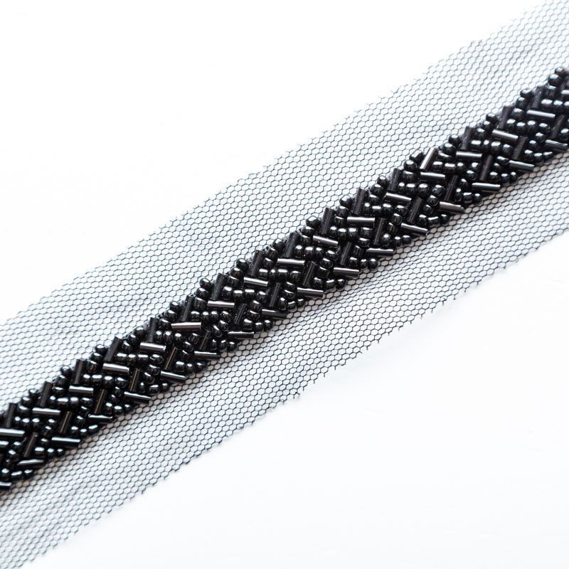 Тесьма декоративная 35 мм со стеклярусом PA0417 черный в Северодвинске