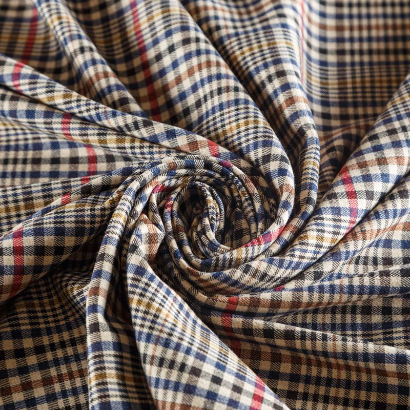 Итальянская костюмно-плательная ткань средней плотности, не сухая, пластичная, приятная на ощупь, тянется за счет эластана в сотаве, формоустойчива, не мнется, хорошо драпируется. Мелкая клетка образована за счет сочетания полос черного, синего, красного, молочного и желтого оттенков. Ткань отлично подойдет на костюмы, юбки, брюки, платья, жакеты, сарафаны, шорты.