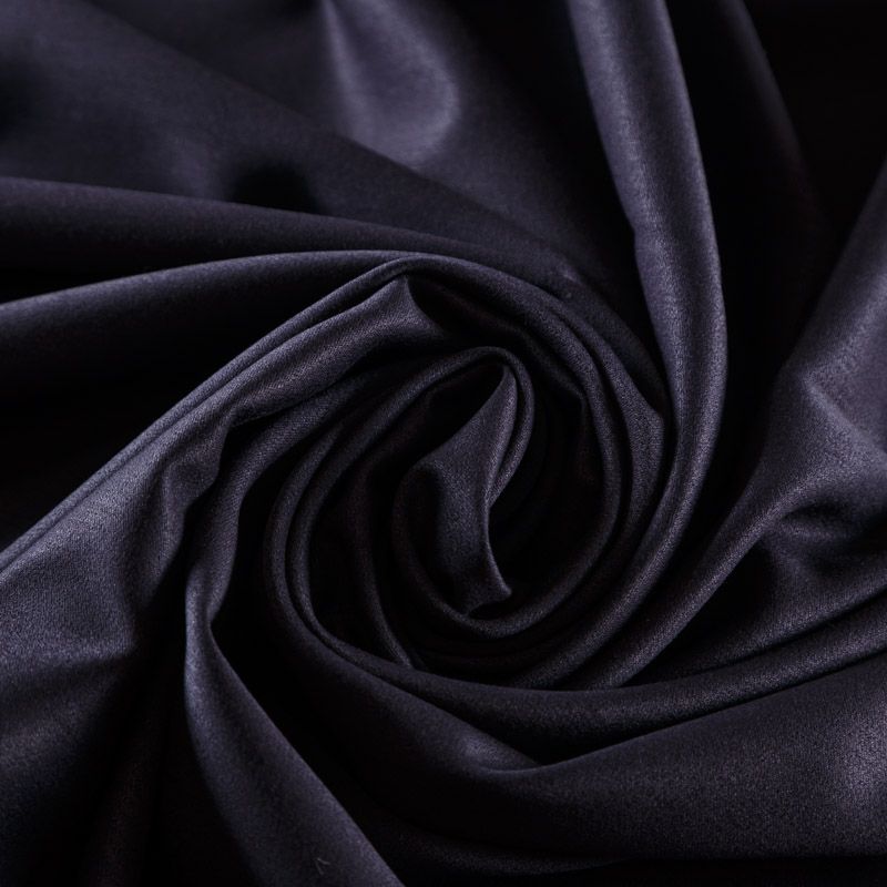 Костюмно-плательная ткань черного цвета, пластичная, очень приятная на ощупь, драпируется в слегка держащие форму складки, поверхность с полотняным переплетением, тянется за счет эластана в составе. Подойдет для всех видов изделий - платьев, сарафанов, модных жакетов, жилетов, брючных и юбочных костюмов, кюлотов, брюк-палаццо, юбок различных фасонов.