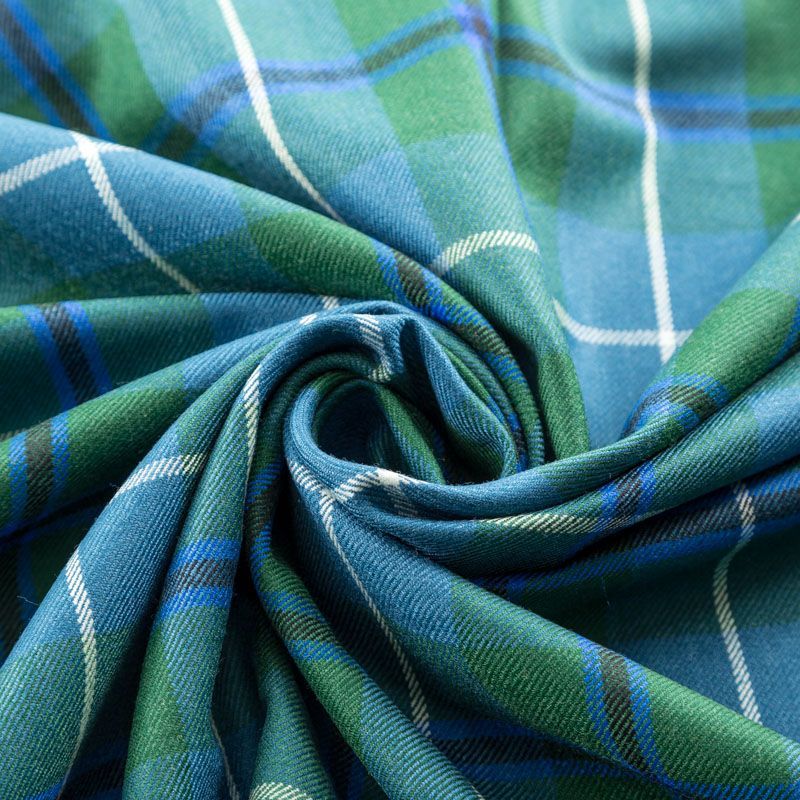 Итальянская костюмная шотландка средней плотности, мягкая и приятная на ощупь, формоустойчива, хорошо драпируется и образует мягкие складки. Сочетание линий синего, зеленого, молочного и черного цветов образует сложную красивую клетку. Ткань отлично подойдет на костюмы, юбки, брюки, платья, жакеты, для школьной формы.