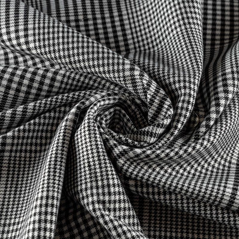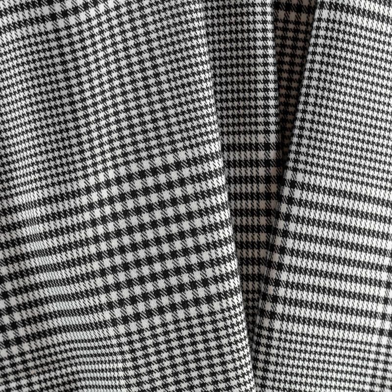 Костюмная ткань в клетку гленчек. Образуется переплетением черных и белых нитей. Ткань очень мягкая, приятная на ощупь, эластичная, хорошо драпируется. Отлично подойдет на костюмы, юбки, брюки, платья, жакеты.