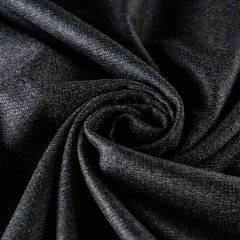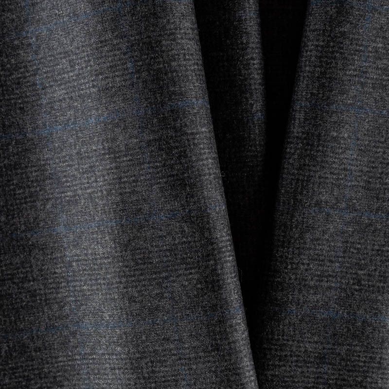 Стильная и элегантная костюмная ткань. Шерсть с бархатистой поверхностью, тонкая, очень приятная на ощупь, пластичная, мягкая, мягко драпируется в складки, немного держит форму. Стильная еле читаемая клетка гленчек, не выраженная в приглушённо-серых оттенках с сочетанием тонкой голубой полоски. Идеально подойдет для пошива сарафанов, жакетов, жилетов, брючных и юбочных костюмов, кюлотов, брюк-палаццо.