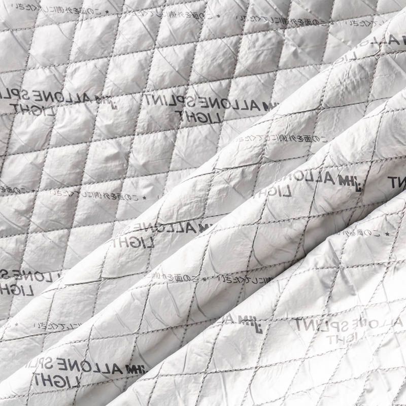 Двухслойная курточная ткань серебристо-серого оттенка с легким эффектом перламутра, простеганная не крупными ромбами размером 3х3 см. Нижний слой - синтепон, верхний - полиэстер, по качеству напоминает болонь. Очень мягкая и легкая, пластичная, хорошо драпируется. Прекрасно подойдет для  пошива легких пальто, курток, жилетов, накидок-кейпов, объемных сумок.