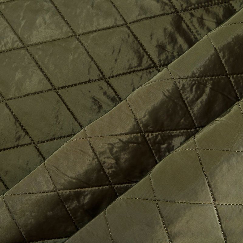 Двухслойная курточная ткань зеленого оттенка, простеганная не крупными ромбами. Нижний слой - синтепон, верхний - полиэстер, по качеству напоминает болонь. Очень мягкая и легкая, пластичная, хорошо драпируется. Прекрасно подойдет для  пошива легких пальто, курток, жилетов, накидок-кейпов, объемных сумок.