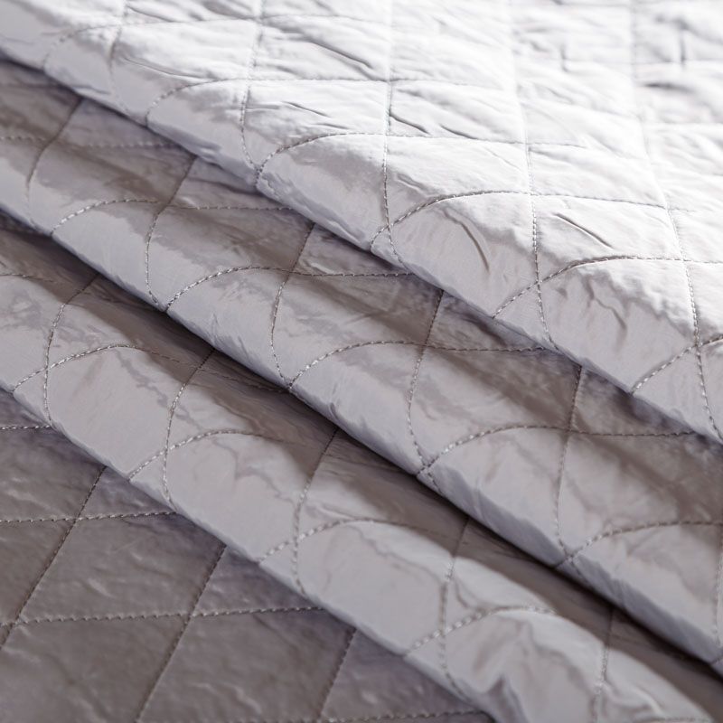 Двухслойная курточная ткань серого оттенка, простеганная не крупными ромбами. Нижний слой - синтепон, верхний - матовый фактурный полиэстер. Очень мягкая и легкая, пластичная, хорошо драпируется. Прекрасно подойдет для  пошива легких пальто, бомберов, парки, курток, жилетов, накидок-кейпов, объемных сумок.