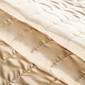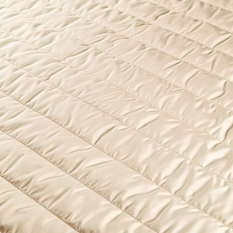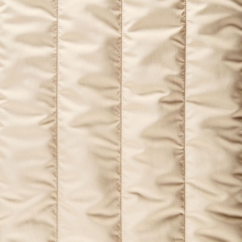 Итальяская двухслойная курточная ткань песочного оттенка, простеганная широкими полосами вдоль кромки. Нижний слой - воздушный синтепоновый утеплитель, верхний - матовая плотная плащевая ткань. Очень мягкая и легкая, пластичная, хорошо драпируется. Прекрасно подойдет для  пошива легких пальто, бомберов, парки, курток, жилетов, накидок-кейпов, объемных сумок.