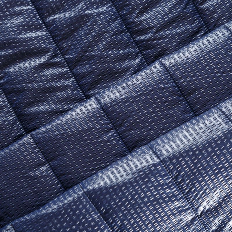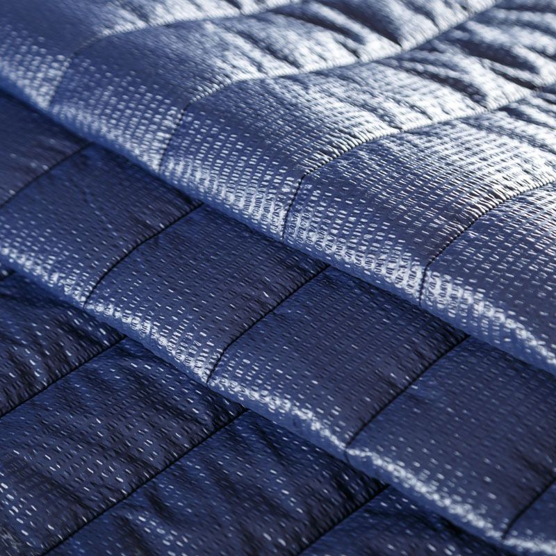 Итальяская двухслойная курточная ткань темно-синего оттенка, простеганная широкими полосами вдоль кромки. Нижний слой - воздушный синтепоновый утеплитель, верхний - матовая плащевая ткань с жатым эффектом. Очень мягкая и легкая, пластичная, хорошо драпируется. Прекрасно подойдет для пошива легких пальто, бомберов, парки, курток, жилетов, накидок-кейпов, объемных сумок.