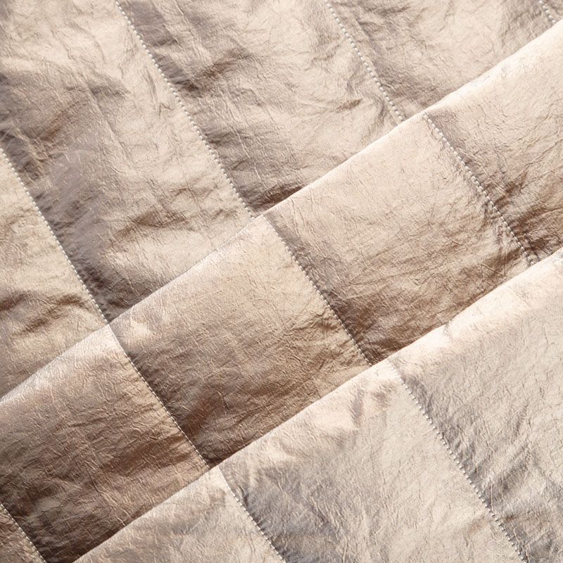 Итальяская двухслойная курточная ткань бронзового оттенка, простеганная широкими полосами вдоль кромки. Нижний слой - воздушный синтепоновый утеплитель, верхний - матовая, слегка жатая плотная плащевая ткань. Очень мягкая и легкая, пластичная, хорошо драпируется. Прекрасно подойдет для  пошива легких пальто, бомберов, парки, курток, жилетов, накидок-кейпов, объемных сумок.