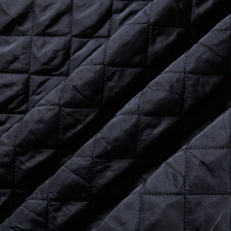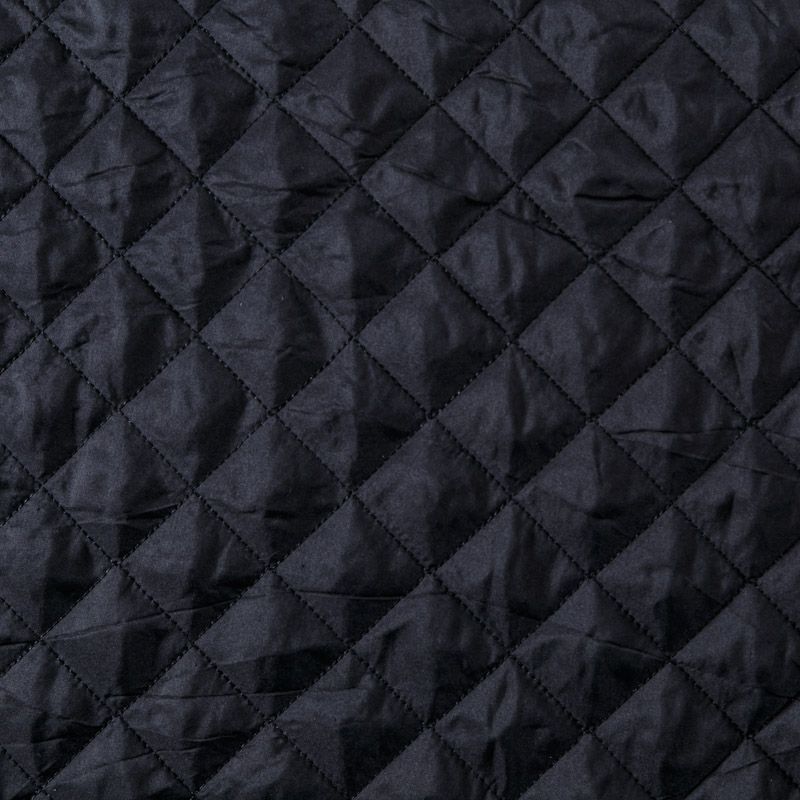 Двухслойная курточная ткань черного цвета, простеганная не крупными ромбами нитками в тон полотну. Нижний слой - синтепон, верхний - плотный матовый полиэстер. Очень мягкая и легкая, пластичная, хорошо драпируется. Прекрасно подойдет для пошива легких пальто, курток, жилетов, накидок-кейпов, объемных сумок.