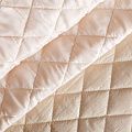 Трехслойная курточная стежка молочного оттенка, простеганная не крупными ромбами. Верхний  слой - полиэстер, по качеству напоминающий болонь, средний слой - синтепон, нижний слой - подкладочная ткань в тон лицевой. Очень мягкая и легкая, пластичная, хорошо драпируется. Прекрасно подойдет для  пошива легких пальто, курток, жилетов, накидок-кейпов, объемных сумок.