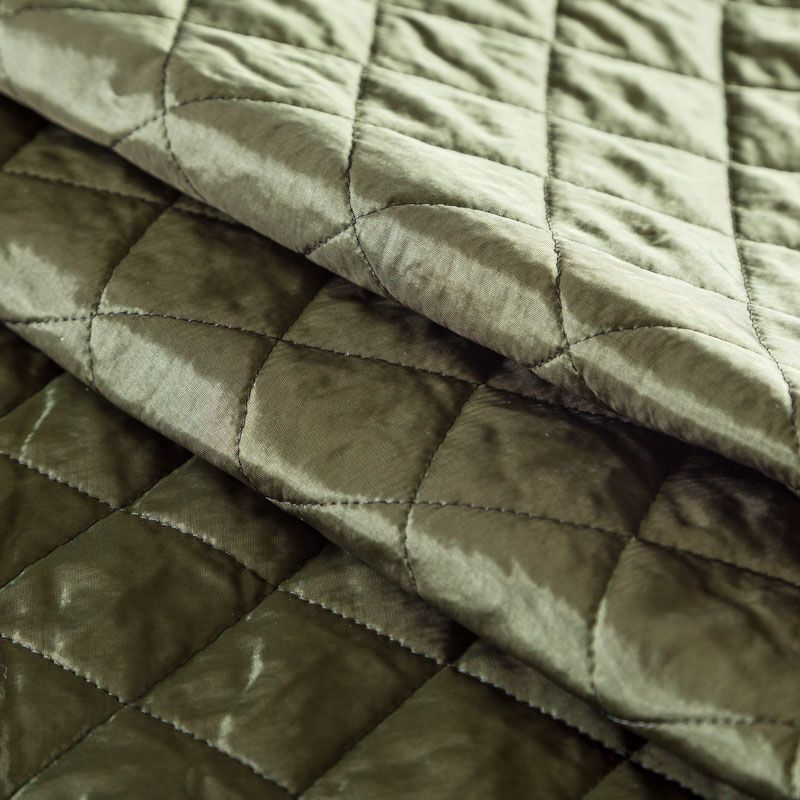 Двухслойная курточная ткань оттенка зеленого хаки с легким блеском, простеганная не крупными ромбами размером 3х3 см. Нижний слой - синтепон, верхний - полиэстер, по качеству напоминает болонь. Очень мягкая и легкая, пластичная, хорошо драпируется. Прекрасно подойдет для пошива легких пальто, курток, жилетов, накидок-кейпов, объемных сумок.