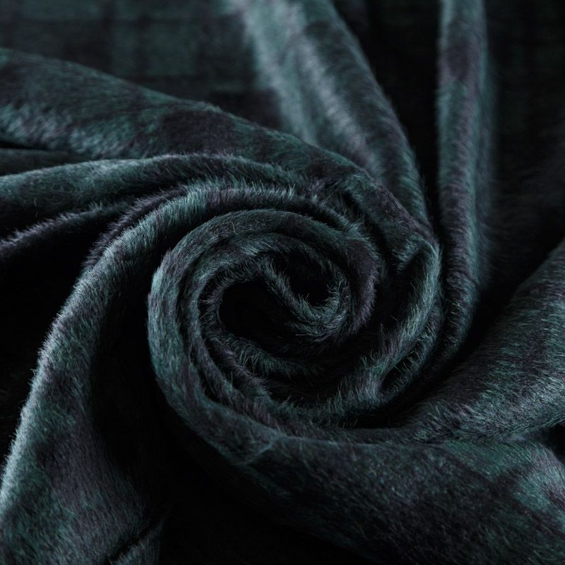 Пальтовая итальянская шерсть в черно-зеленую клетку. Ткань плотная, достаточно теплая, комфортная для одежды на сезон осень-зима. Полотно имеет средний ворс. Мягкое и нежное на ощупь, не толстое и не тяжелое, хорошо держит форму. Прекрасно подойдет для пошива женских пальто, теплых костюмов, кейпов, мягких бомберов, жилетов и головных уборов.