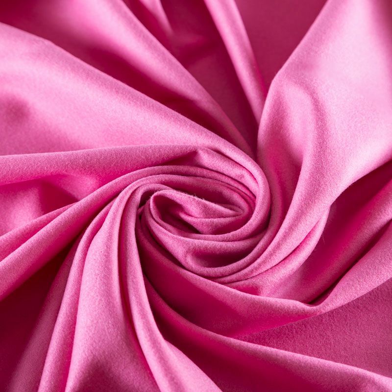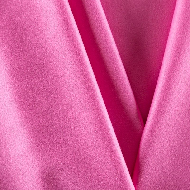 Итальянская пальтовая ткань из шерсти с кашемиром, в ярком розовом оттенке. Пластичная, мягкая, поверхность с направленным прижатым ворсом. Подойдет для пошива пальто, кейпа, накидки, мягкого бомбера.