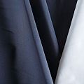 Плотная прочная плащевая ткань темно-синего цвета с полиуретановым белым покрытием с изнаночной стороны. Поверхность ткани матовая, ровная и гладкая. Подходит для изготовления плащей, курток, ветровок, бомберов, одежды для домашних питомцев, туристического снаряжения.