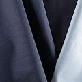 Плотная прочная плащевая ткань темно-синего цвета с полиуретановым белым покрытием с изнаночной стороны. Поверхность ткани матовая, ровная и гладкая. Подходит для изготовления плащей, курток, ветровок, бомберов, одежды для домашних питомцев, туристического снаряжения.