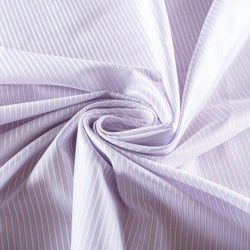 Итальянский плательно-сорочечный хлопок с горизонтальной жаккардовой белой полоской на пастельно-голубом фоне. Ткань мягкая, тонкая, лёгкая, непрозрачная, пластичная и приятная к телу, хорошо драпируется, имеет фактурную поверхность, сатиновый блеск. Прекрасно подойдет как для пошива предметов мужского гардероба, так и для блуз, платья-рубашки, сарафана, туники, топа, летнего костюма, детской одежды.