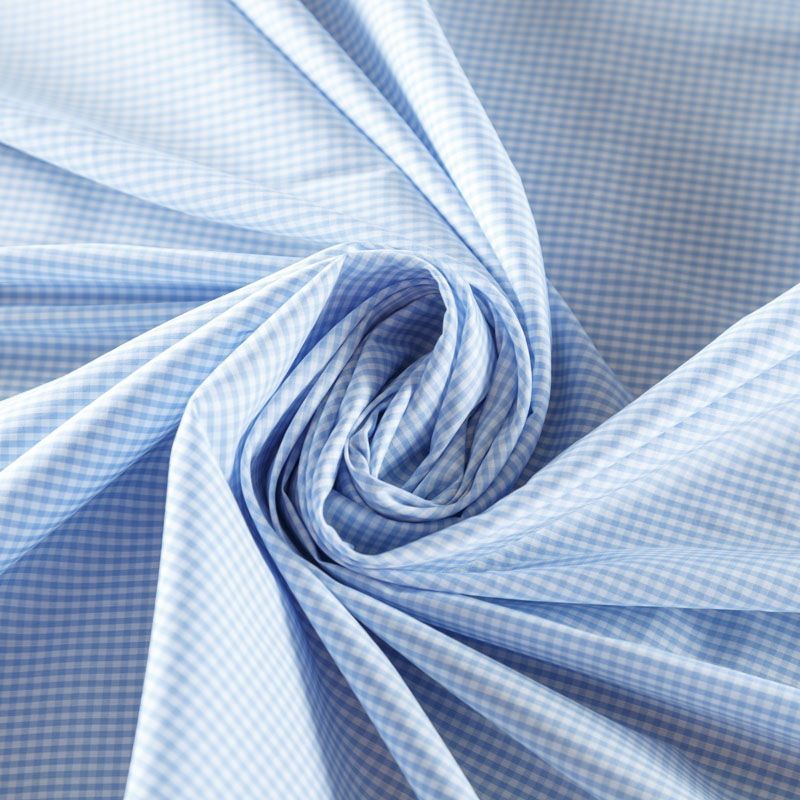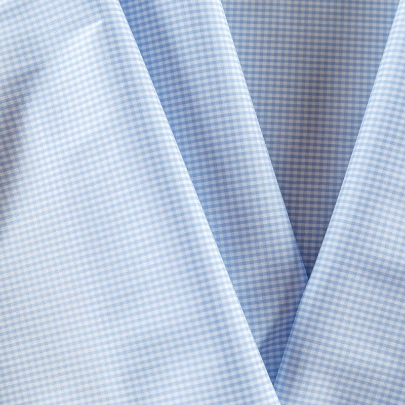 Итальянский плательно-рубашечный смесовый хлопок с эластаном в голубую клетку "виши". Ткань мягкая, лёгкая, непрозрачная, пластичная и приятная к телу, хорошо драпируется, имеет гладкую матовую поверхность и сатиновое плетение. Прекрасно подойдет как для пошива платья-рубашки, сарафана, платьев различных фасонов, туники, топа, летнего костюма, комбинезона, детской и мужской одежды.