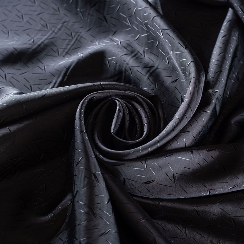 Подкладочная ткань легкая, с мелким абстрактным жаккардовым рисунком, с красивым блеском. Не просвечивает, хорошо скользит. Подойдет для изготовления таких изделий, как пальто, костюмы, куртка, шуба, платье, жакет.