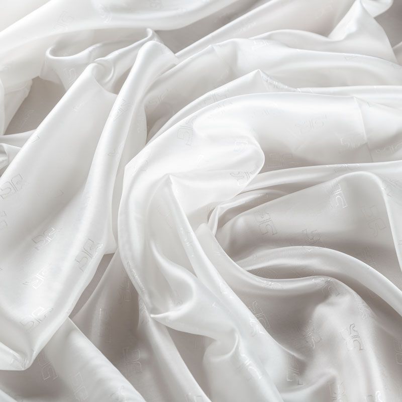 Итальянская подкладочная ткань из вискозы белого оттенка с жаккардовым геометрическим узором и красивым лоском. Полотно средней плотности, легкое, не просвечивает, хорошо скользит, не тянется. Подойдет для изготовления таких изделий, как пальто, костюмы, куртка, шуба, платье, жакет.