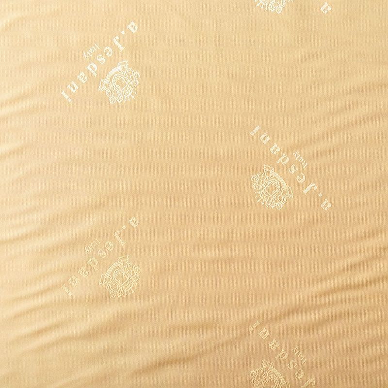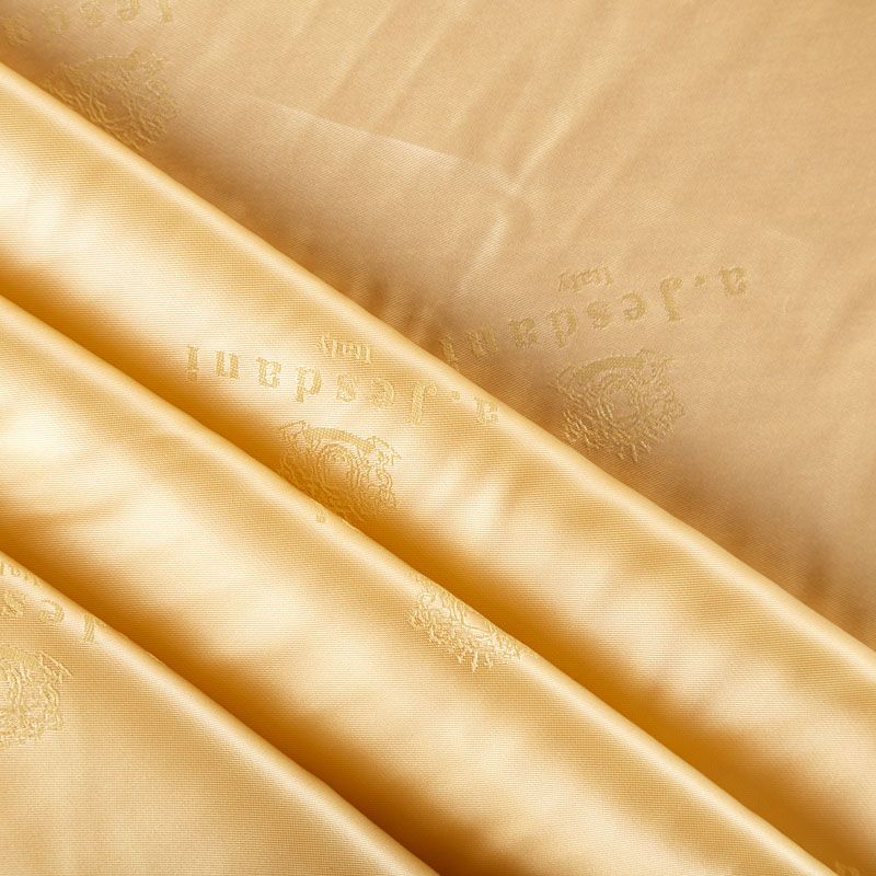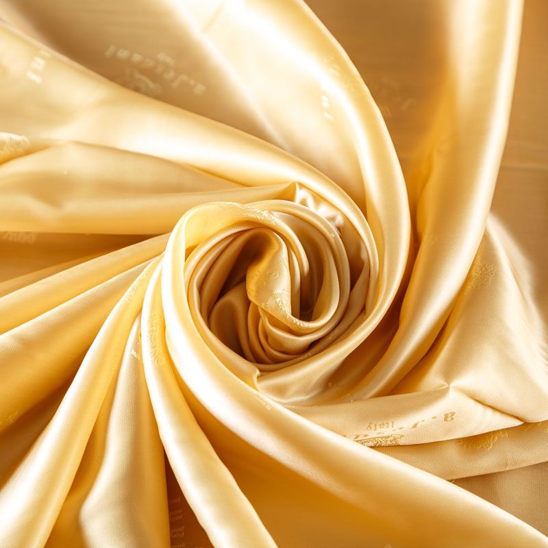 Итальянская подкладочная ткань из вискозы желтого оттенка с редким жаккардовым узором и красивым лоском. Полотно средней плотности, легкое, не просвечивает, хорошо скользит, не тянется. Подойдет для изготовления таких изделий, как пальто, костюмы, куртка, шуба, платье, жакет.