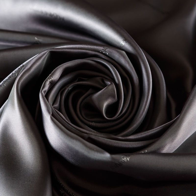 Итальянская подкладочная ткань из вискозы темного оттенка с редким жаккардовым узором и красивым лоском. Полотно средней плотности, легкое, не просвечивает, хорошо скользит, не тянется. Подойдет для изготовления таких изделий, как пальто, костюмы, куртка, шуба, платье, жакет.