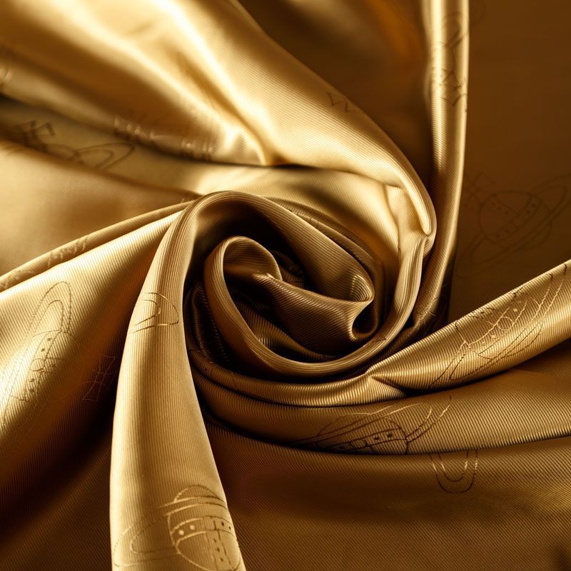 Итальянская подкладочная ткань из вискозы горчичного оттенка с редким жаккардовым узором и красивым блеском. Полотно средней плотности, легкое, не просвечивает, хорошо скользит, не тянется. Подойдет для изготовления таких изделий, как пальто, костюмы, куртка, шуба, платье, жакет.
