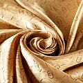 Смесовая подкладочная ткань желтого оттенка с жаккардовым узором и красивым лоском. Полотно средней плотности, легкое, не просвечивает, хорошо скользит, не тянется. Подойдет для изготовления таких изделий, как пальто, костюмы, куртка, шуба, платье, жакет.