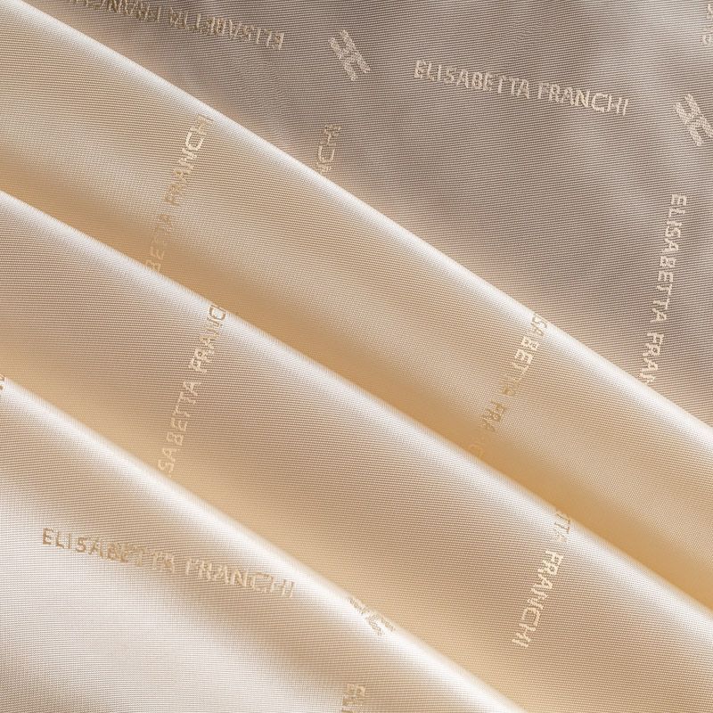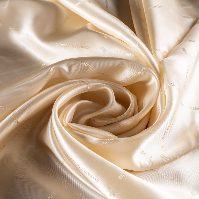 Подкладочная ткань легкая, с твиловой поверхностью и редкими жаккардовым надписями, с красивым блеском. Не просвечивает, хорошо скользит. Подойдет для изготовления таких изделий, как пальто, костюмы, куртка, шуба, платье, жакет.