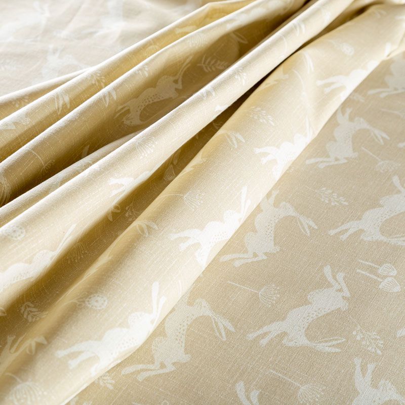 Английская ткань из коллекции Джамп известного бренда Fryett's со сказочный дизайном с изображением прыгающих зайцев на текстурированной хлопковой основе. Ткань средней плотности, прекрасно держит форму, драпируется в устойчивые складки. Подойдет для плотных штор, покрывал, подушек, скатертей, салфеток и других элементов текстильного интерьера.