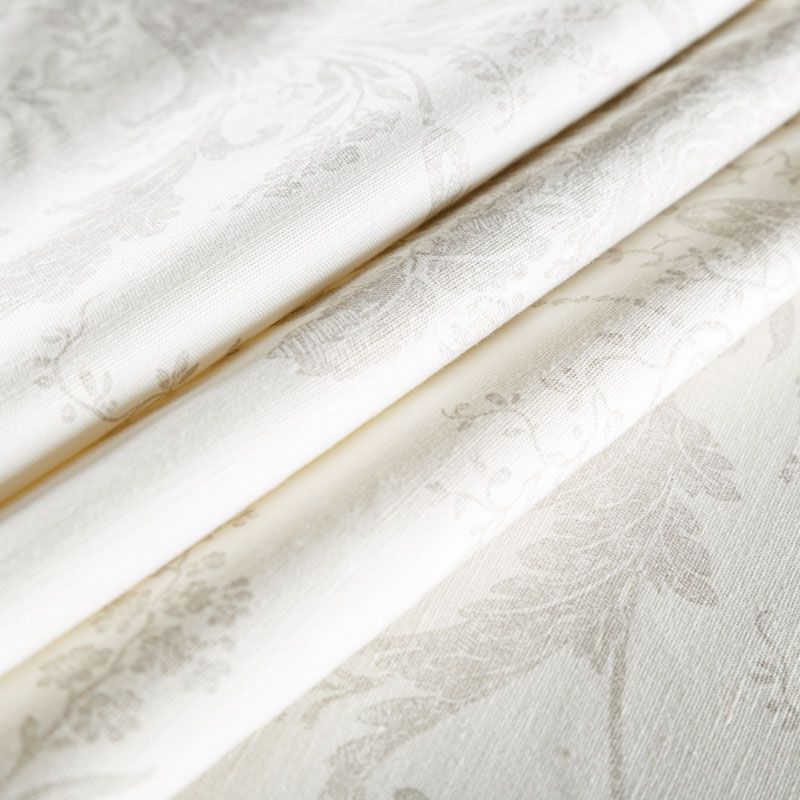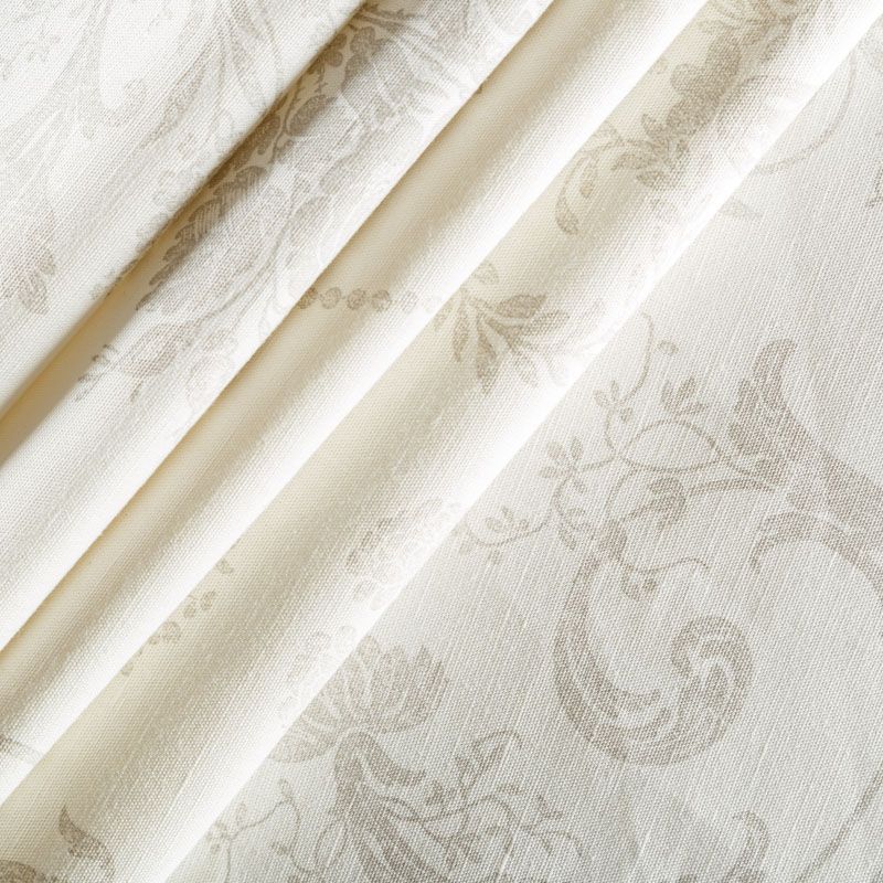 Элегантный дизайн дамасской ткани в молочно-серых оттенках добавит нотку французского гламура вашему интерьеру. Ткань средней плотности, без блеска, хорошо драпируется, имеет полонтяное переплетение. Можно использовать для пошива портьер, римской шторы, салфеток, столового белья, подушек, покрывал и других предметов текстильного интерьера.