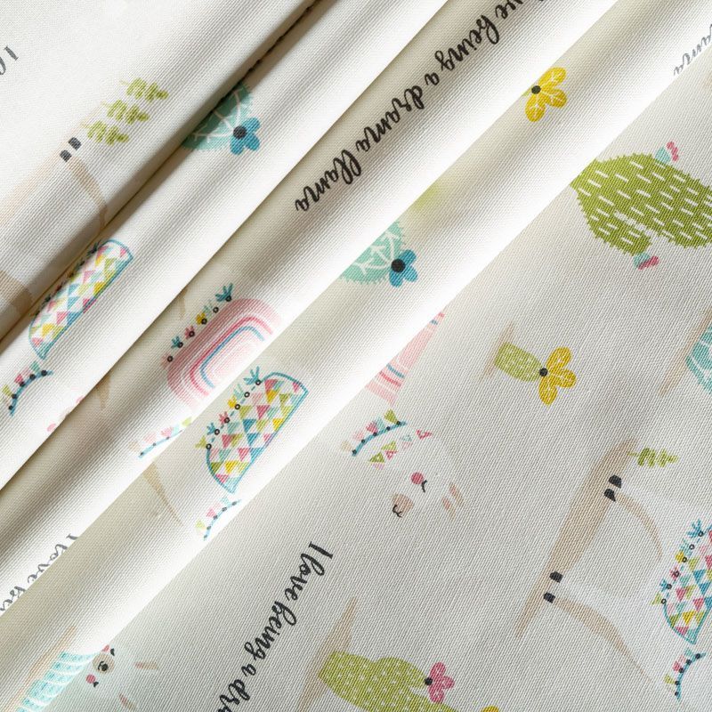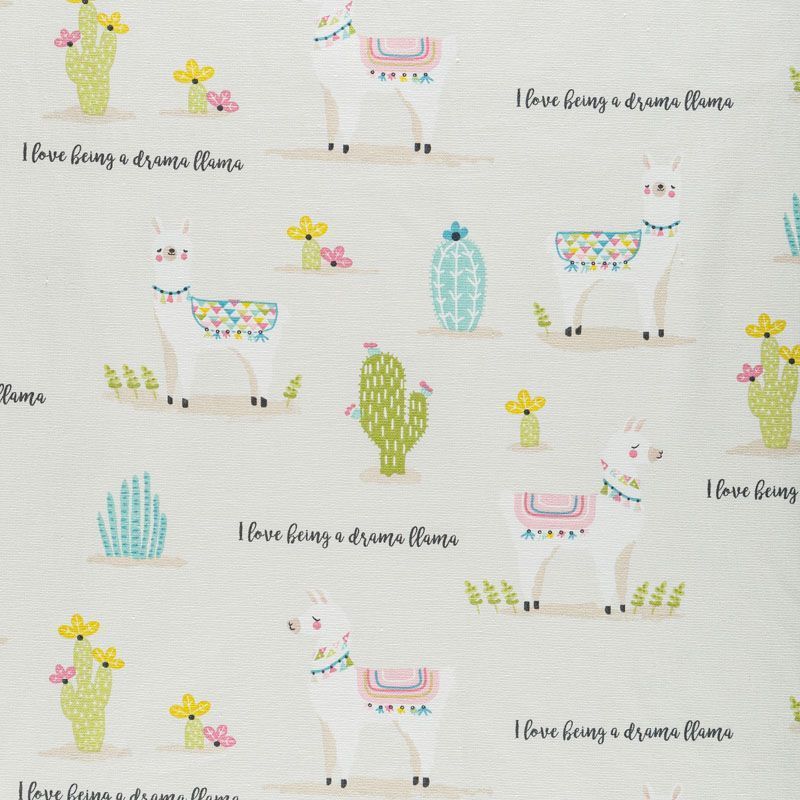 Натуральная хлопковая портьерная ткань в дизайне Драма Лама от известного бренда Fryett's с милым ярким принтом в виде кактусов и лам. Ткань средней плотности, без блеска, хорошо драпируется, имеет полонтяное переплетение. Прекрасно подойдет для оформления детской или дачного интерьера. Можно использовать для пошива портьер, римской шторы, салфеток, столового белья, подушек, покрывал, обивки мебели.