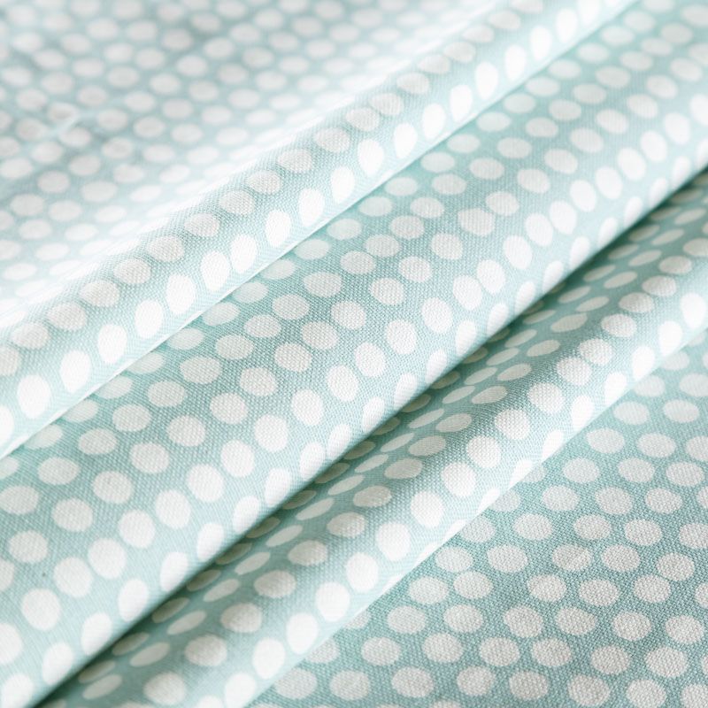 Хлопковая портьерная ткань Спотти из коллекции Сканди английского производителя Fryett's Fabric. На мятно-бирюзовой текстурированной основе наснесен принт в виде белых кружков-пятнышек. Ткань средней плотности, прекрасно держит форму, драпируется в устойчивые складки. Подойдет для классических портьер, римских штор, покрывал, подушек, скатертей, салфеток и других элементов текстильного интерьера как в самостоятельном исполнении, так и качестве компаньона к однотонным варинтам.