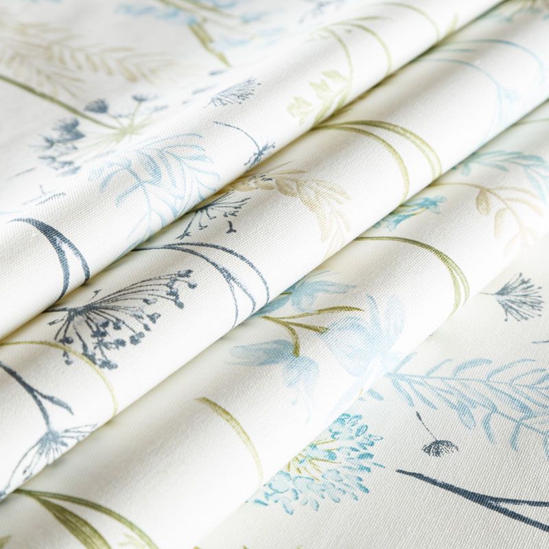 Натуральная хлопковая портьерная ткань с принтом полевых растений в пастельных нежных оттенках. Ткань средней плотности, без блеска, хорошо драпируется, имеет полонтяное переплетение. Прекрасно подойдет для оформления детской, кухни, столовой или дачного интерьера. Можно использовать для пошива портьер, римской шторы, салфеток, столового белья, подушек, покрывал и других предсетов текстильного интерьера.