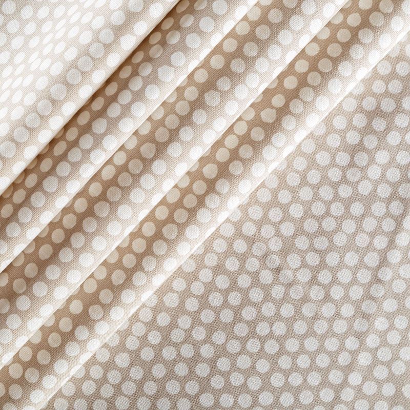 Хлопковая портьерная ткань Спотти из коллекции Сканди английского производителя Fryett's Fabric. На бежевой текстурированной основе наснесен принт в виде белых кружков-пятнышек. Ткань средней плотности, прекрасно держит форму, драпируется в устойчивые складки. Подойдет для классических портьер, римских штор, покрывал, подушек, скатертей, салфеток и других элементов текстильного интерьера как в самостоятельном исполнении, так и качестве компаньона к однотонным варинтам.