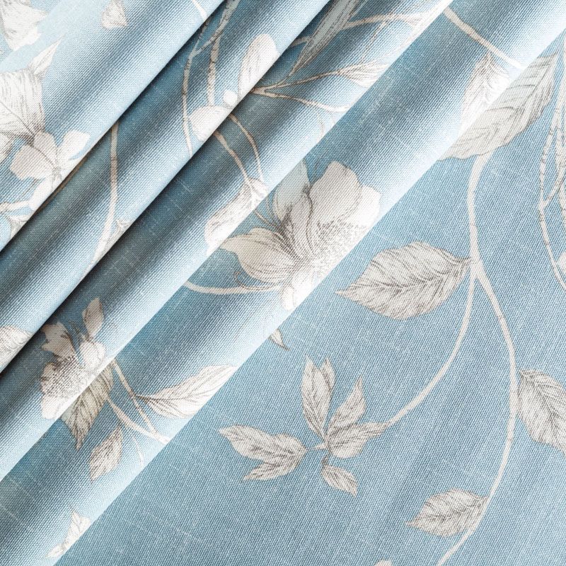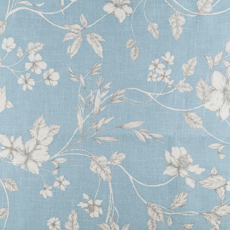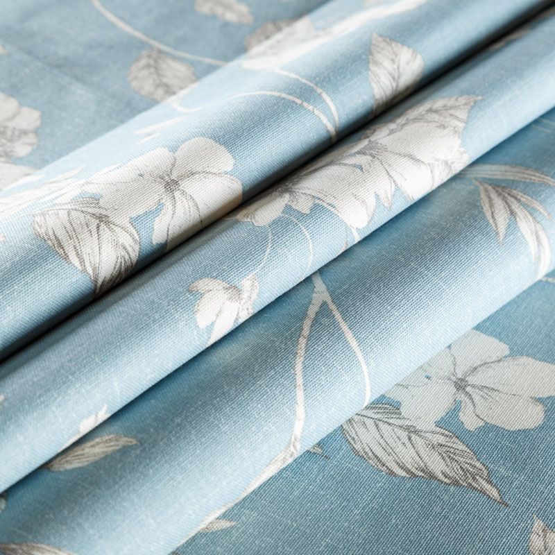 Хлопковая портьерная ткань английского производителя. На голубой текстурированной основе нанесен изящный растительный принт в черно-белой гамме. Ткань средней плотности, прекрасно держит форму, драпируется в устойчивые складки. Подойдет для классических портьер, римских штор, покрывал, подушек, скатертей, салфеток и других элементов текстильного интерьера как в самостоятельном исполнении, так и качестве компаньона к однотонным варинтам.