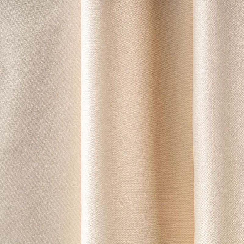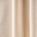 Двухстороняя плотная ткань. Обе стороны гладкие, имеют сатиновый легкий глянец. Ткань хорошо драпируется, укладываясь в крупные ниспадающие пластичные складки и позволяет использовать любые виды крепления для штор – люверсы, ленту, кольца.  Блокирует от 50 до 90 % проникновение света в помещении, не склонна к выгоранию и деформации. Удачно впишется в такие интерьеры, как эко, лофт, модерн в качестве портьер и других элементов текстильного оформления.