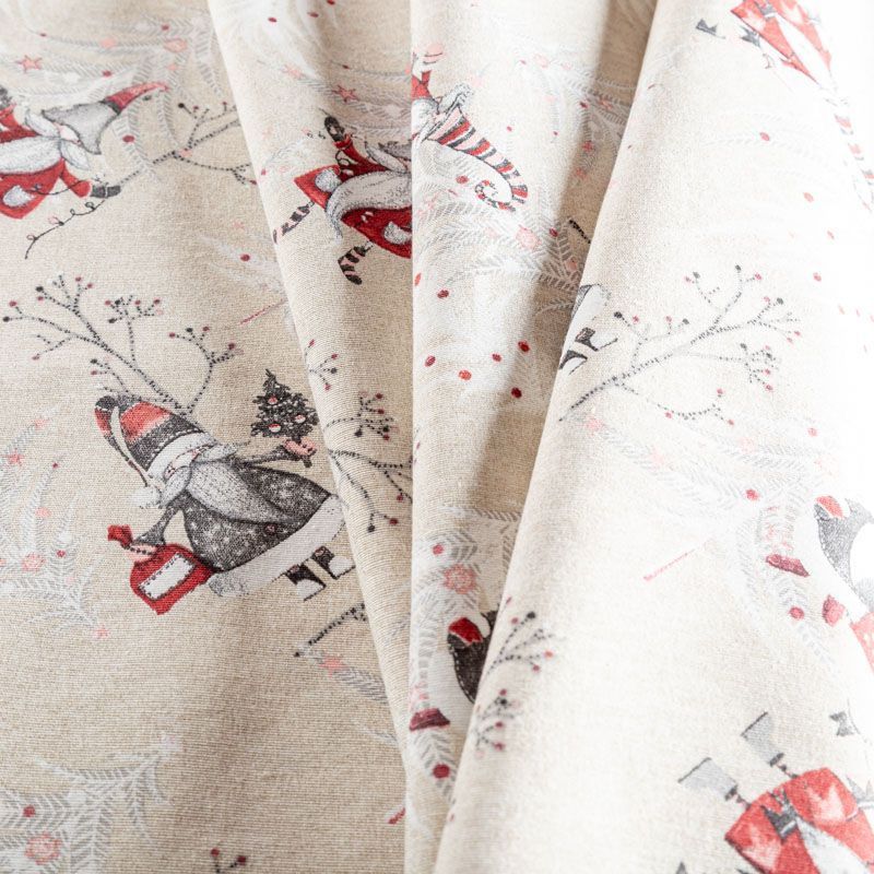 Декоративный смесовый хлопок с новогодне-рождественским принтом от испанского производителя Visatex. Ткань средней плотности, приятная и гладкая на ощупь. Интересный вариант для пошива штор, декоративных подушек и покрывал, изготовления текстильных элементов в кухнях-столовых, гостинных, спальнях и даже детских.