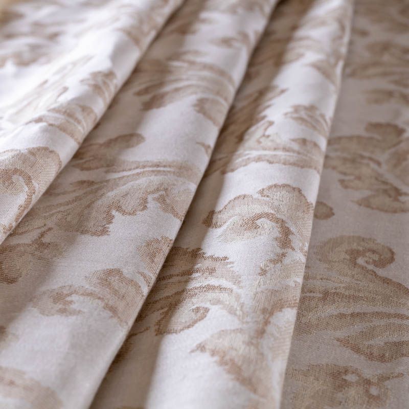 Натуральная льняная жаккардовая портьера с классическим растительным орнаментом в песочной цветовой гамме. Ткань плотная, тяжелая, может драпироваться в большие складки. Лен подойдет для плотных штор, покрывал, подушек, скатертей и салфеток, обивки мебели, Прекрасно впишется в интерьер как в совеременном стиле, так и в стиле прованс.