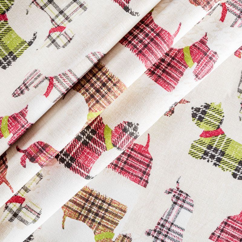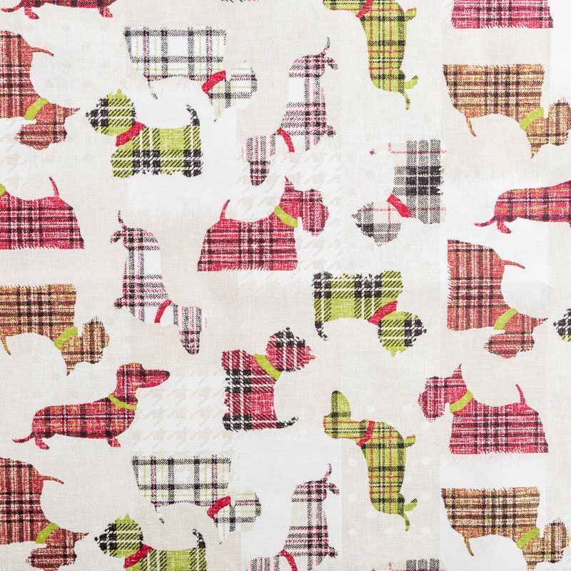 Декоративный смесовый хлопок с интересным ярким стилизованным принтом в виде собак разнообразных пород от испанского производителя Visatex. Плотный и прочный, эстетичный по внешнему виду и удобный в использовании. Забавное и оригинальное решение в оформлении детских и игровых комнат, гостиных в качестве милых портьер, декоративных подушек и чехлов для кресел и пуфов, драпировок и ярких настенных панно.