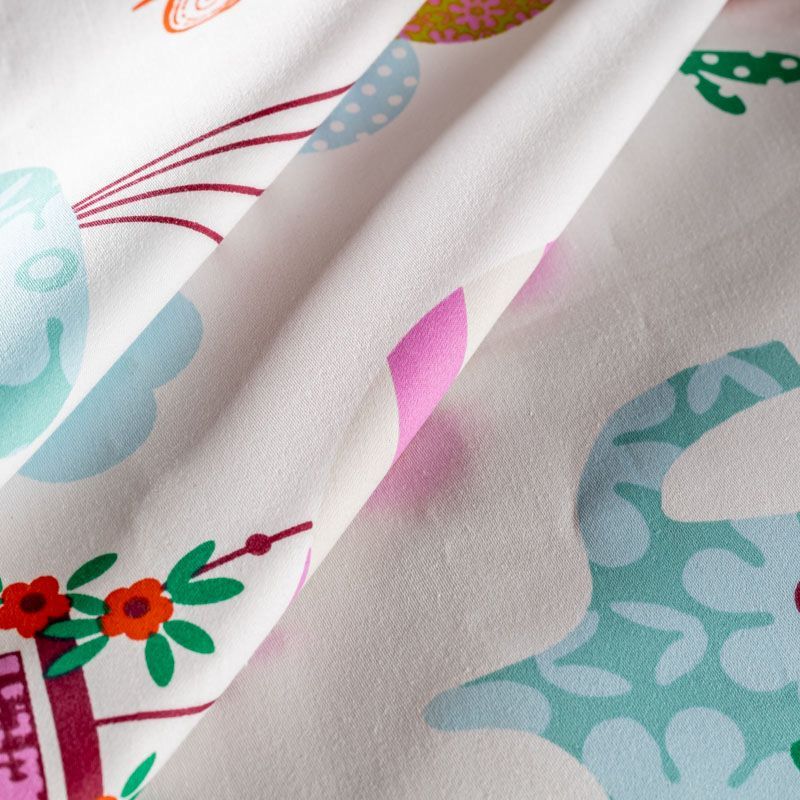 Белоснежная смесовая портьерная ткань сатинового плетения с милым ярким принтом. Ткань средней плотности, без блеска, хорошо драпируется. Прекрасно подойдет для оформления детской или дачного интерьера. Можно использовать для пошива портьер, римской шторы, салфеток, столового белья, подушек, покрывал, постельного белья.