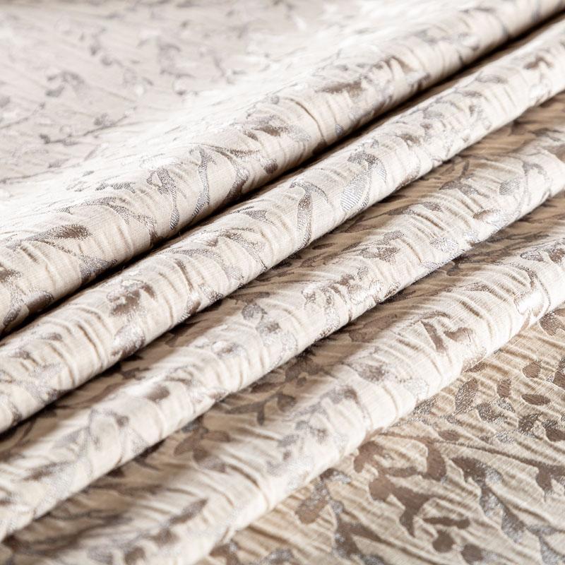 Стильная жаккардовая ткань светло-коричневого оттенка с великолепным растительным дизайном из коллекции Фабио известного бренда Fryett's. Ткань высокой плотности, имеет фактурную поверхность и сдержанный сатиновый блеск, прекрасно держит форму. Ткани этой коллекции прекрасно впишутся в традиционный и современный интерьер в качестве римской или классической шторы, подушек, обивки мебели.