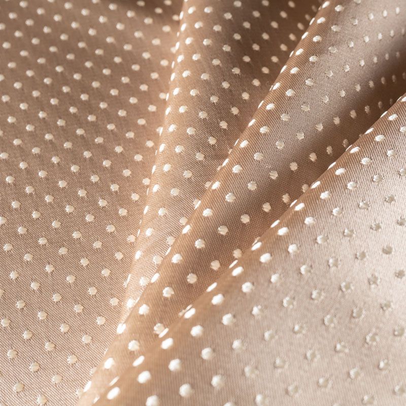 Универсальный жаккардовый рисунок в виде мелкого горошка молочного цвета идеален для оформления интерьера в большинстве стилей. Ткань средней плотности, хорошо держит форму и драпируется. Рекомендуется для пошива штор, декоративных чехлов, покрывал, изготовления столового белья, подушек, скатертей и салфеток.