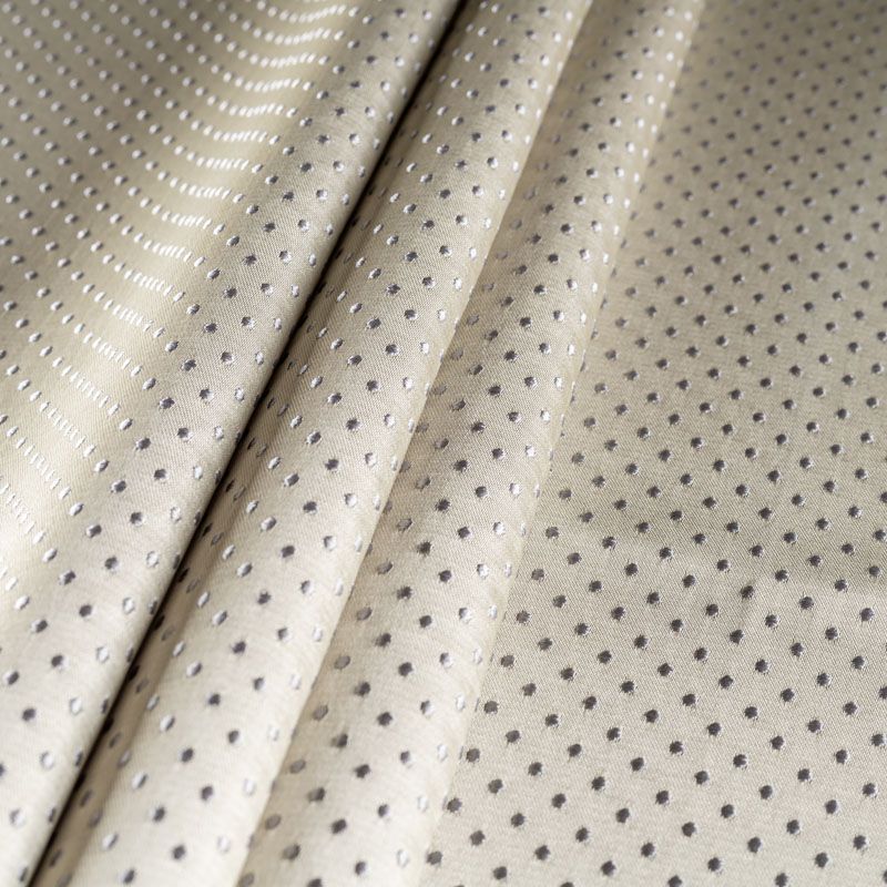 Универсальный жаккардовый рисунок в виде мелкого горошка сине-серебристого оттенка идеален для оформления интерьера в большинстве стилей. Ткань средней плотности, хорошо держит форму и драпируется. Рекомендуется для пошива штор, декоративных чехлов, покрывал, изготовления столового белья, подушек, скатертей и салфеток.
